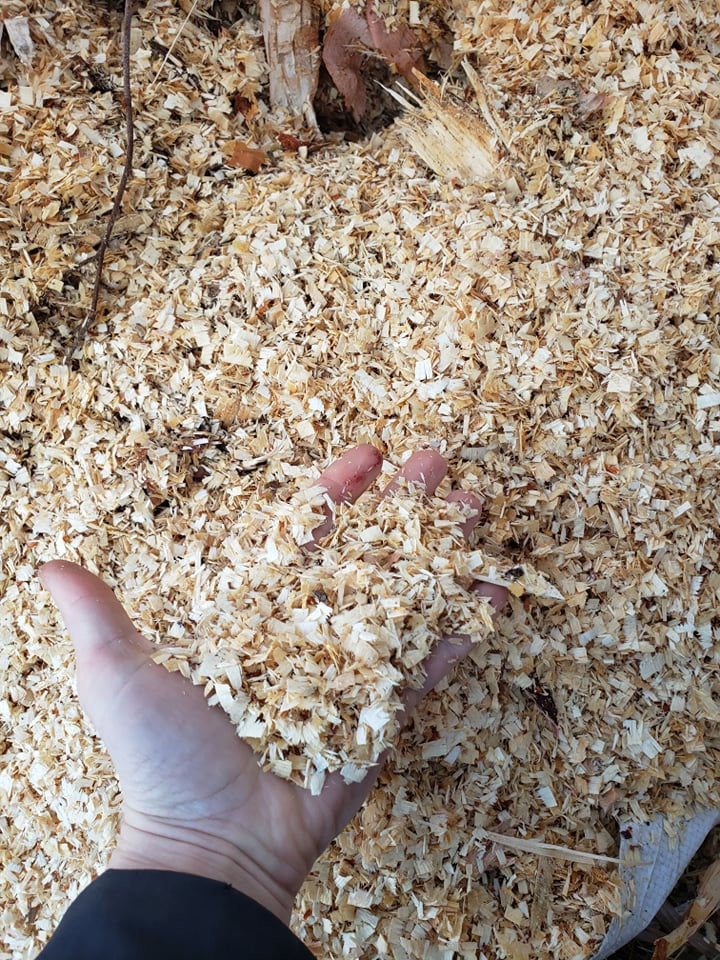 This can be an carbon based material, we use woodchips from a local woodcutter. We get some very nice quality small shavings as well as some bigger pieces of wood in the tote bags that's okay. You could even talk to your county and tell them that you are willing to be a drop off spot for woodchips from their cutters. You will want to keep your woodchip pile dry under a lean-to, even just a tarp is better than nothing.